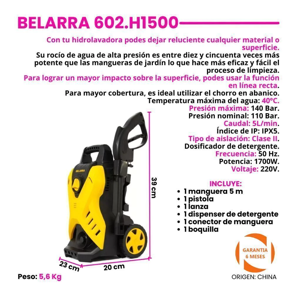 Hidrolavadora 140 Bar Alta Presion Belarra 1700w