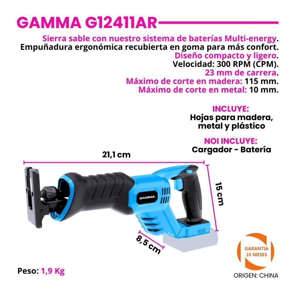 Sierra Sable Reciprocante Gamma Inalambrica A Bateria 20v